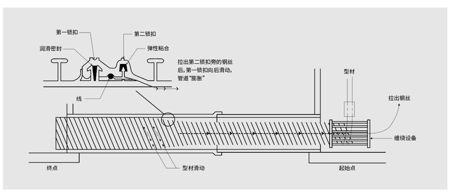 Nordiloc? X又稱膨脹螺旋纏繞更新技術,主要適用于老舊小區排水管道的更新,尤其適合山地、陡坡等帶有一定角度的重力管道。更新完成后,螺旋纏繞管將緊密貼合于原主管道內壁上。口徑范圍為 DN300mm至DN800mm。