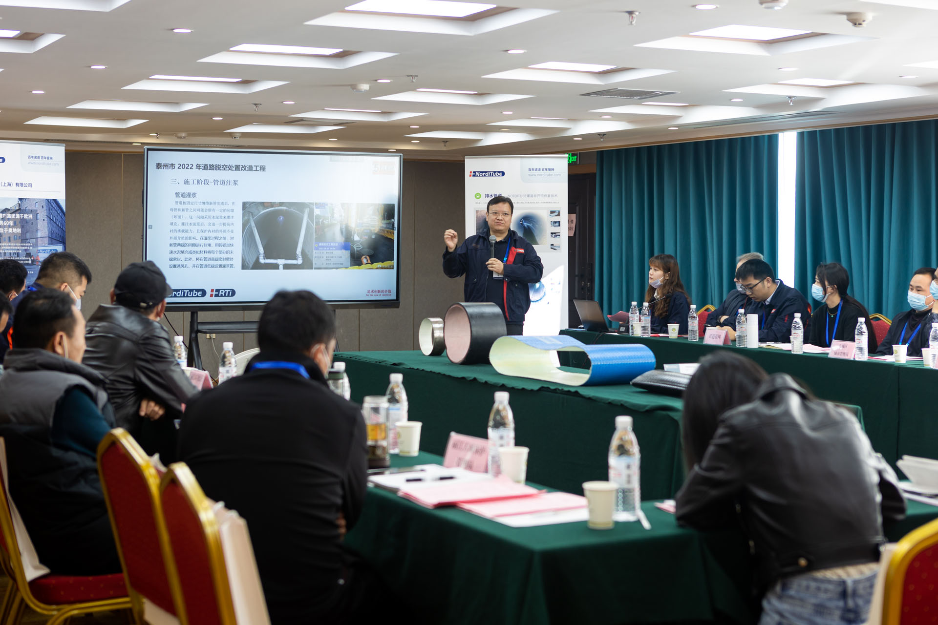 會上,諾道管網技術(上海)有限公司副總裁秦慶戊先生對我司諾道管網的產品及工藝作了詳細的講解,他指出“歐洲作為非開挖更新的發源地,諾道的產品經歷了百年的驗證,是經得起考驗的,并且它不僅擅長于常見管道的高品質更新,更可以應用在多種特殊的工況中”。接下來,他向參會人員介紹了諾道管網在歐洲業績遙遙領先的CIPP產品NordiFlow;分支管道更新最佳方案TubeTex以及適合長距離更新方案的NordiLong等明星產品,現場掌聲雷動。