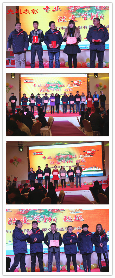 年會中,公司董事長沙月華、復(fù)合軟管事業(yè)部總經(jīng)理陳勇、常務(wù)副總經(jīng)理劉玲、副總經(jīng)理周杉鴻、技術(shù)總監(jiān)顧春東分別為先進人員頒發(fā)證書。領(lǐng)導(dǎo)、同事激情獻(xiàn)唱。